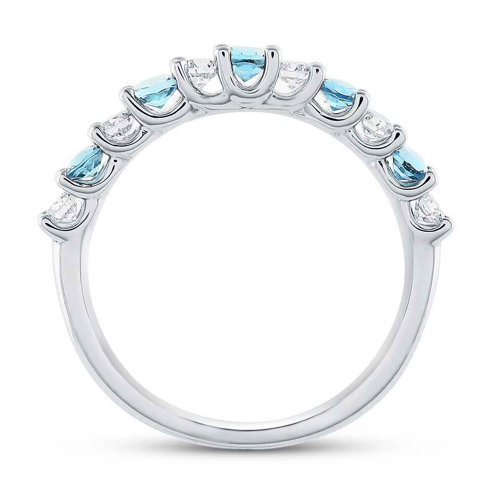 Graduated Side Stone Diamond and Blue Topaz Ring in 18K White Gold (0.31 ct. tw.)