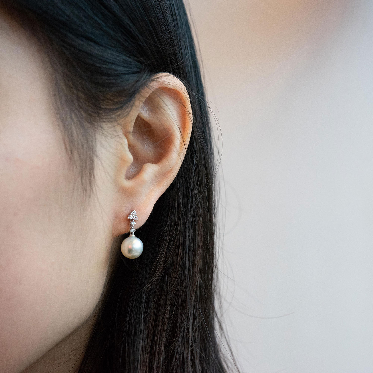 Akoya Pearl Diamond Earrings In 18K White Gold (8mm)