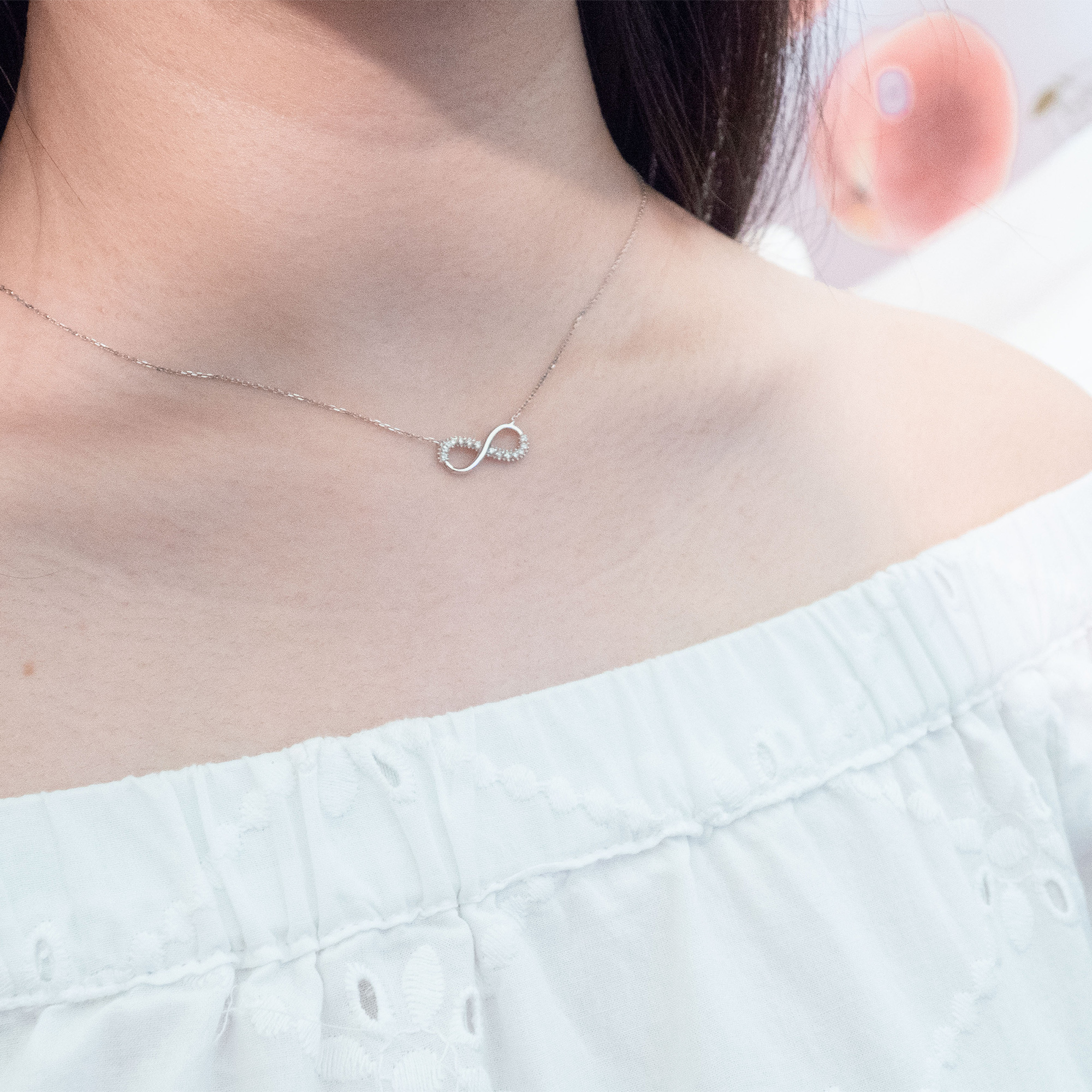Mini Infinity Diamond Necklace in 14k White Gold( 0.105 ct. tw. )