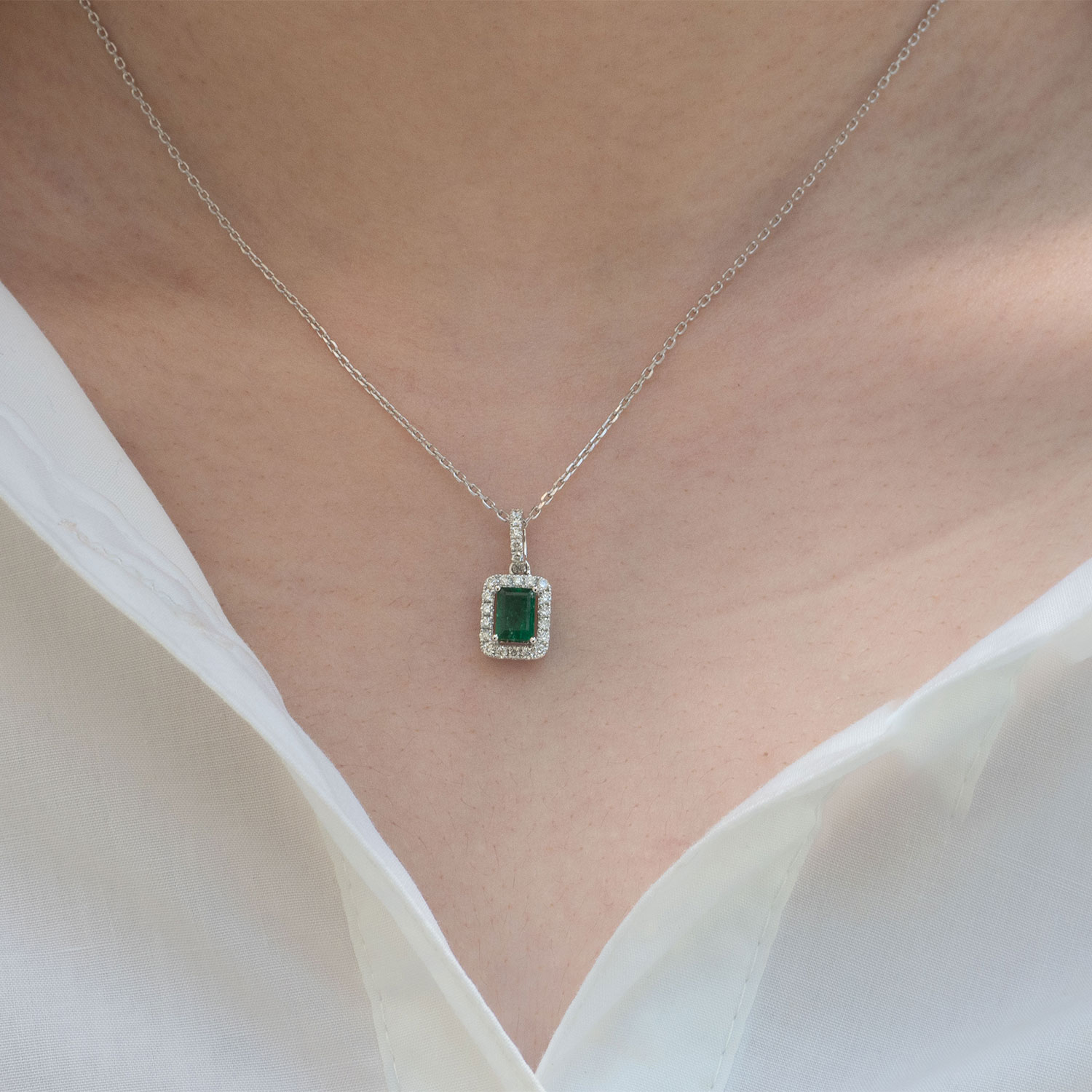 Chesire Emerald Pendant in 18K White Gold